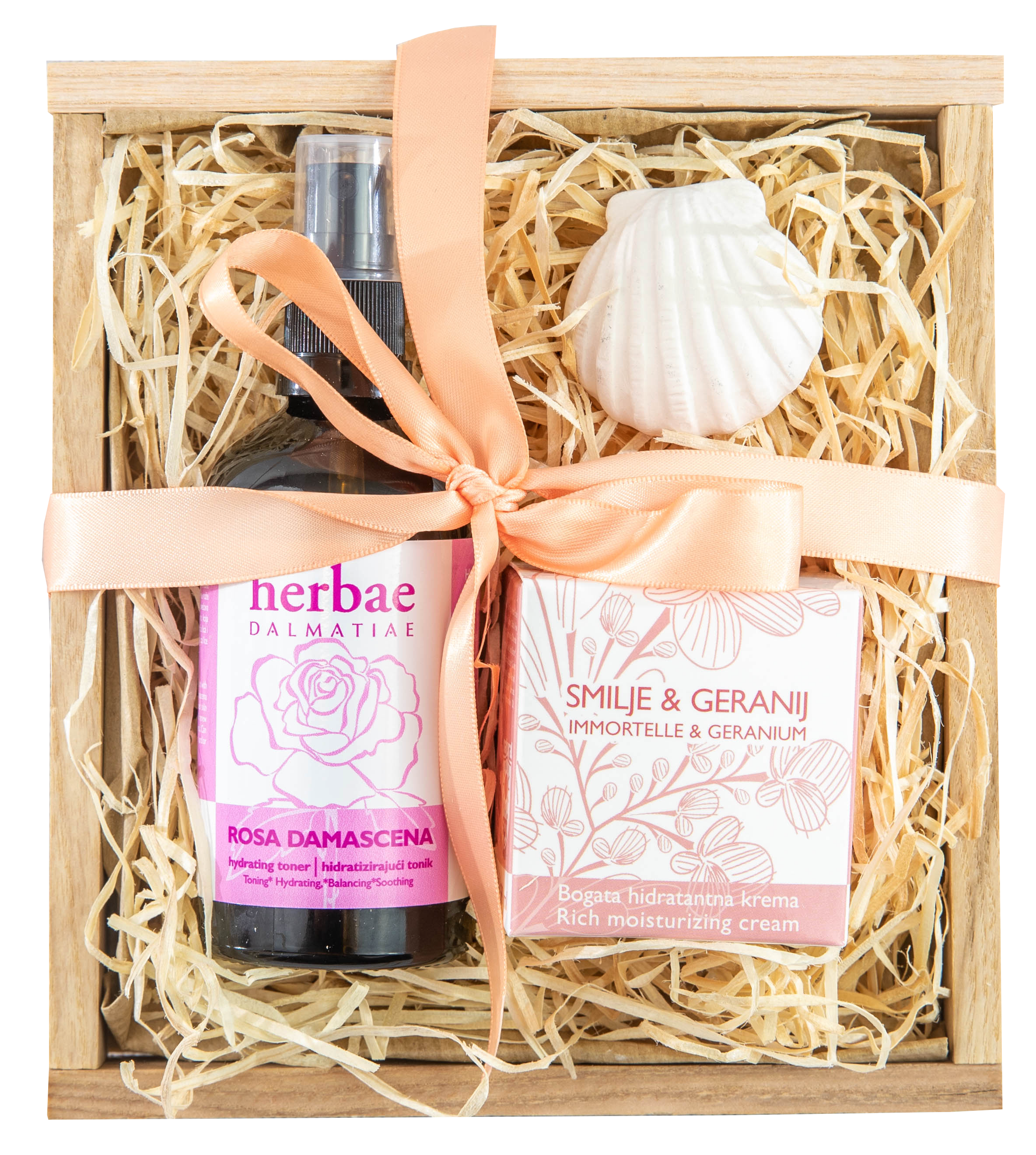 PRODUCT DESCRIPTION: Geranium & Immortelle rich moisturizing face cream 50ml, Damask rose toner 100ml.